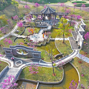 时下,正是广西南宁园博园上千株紫花风铃木盛放时节。冬日里,紫花风铃木花朵格外娇艳,吸引游客前来观赏。