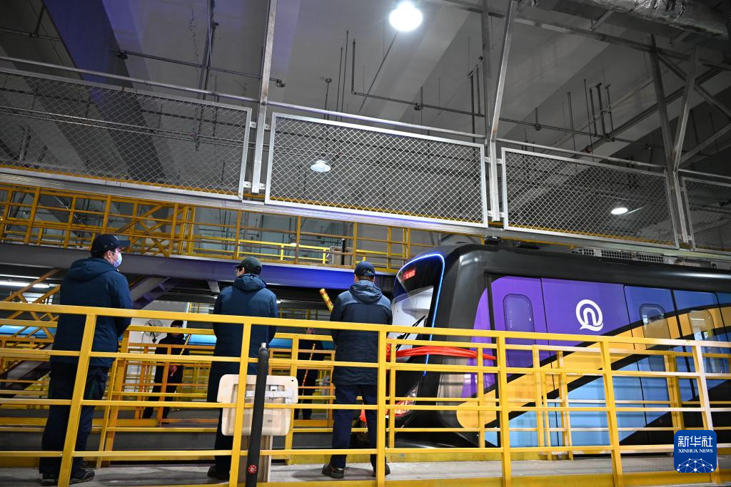1月10日,驾驶人员准备驾驶碳纤维地铁列车上线商业运营。