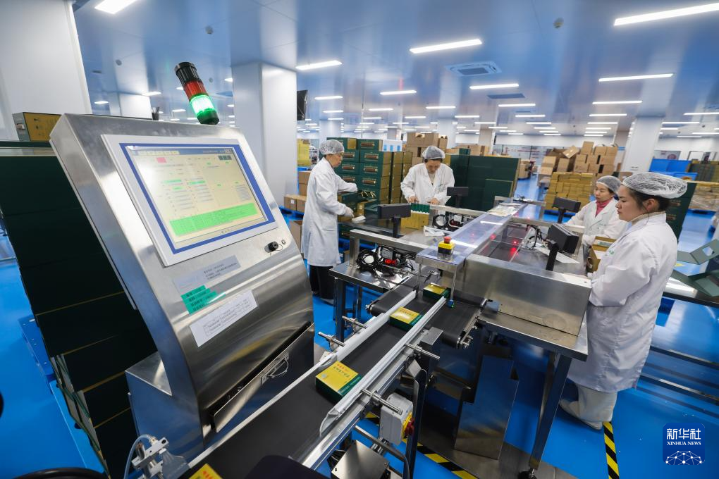 1月9日,在金华市武义县浙江寿仙谷医药股份有限公司的数字化车间内,流水线上正在生产以铁皮石斛为原料的保健品。