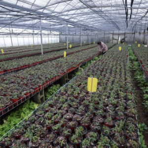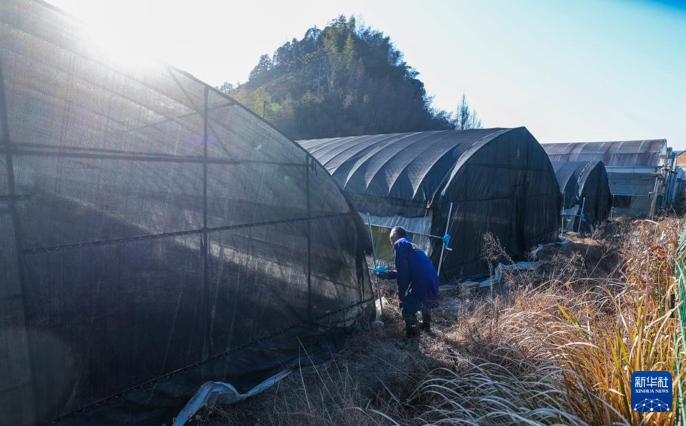 1月10日,在金华武义县的浙江万寿康生物科技有限公司铁皮石斛种植基地内,种植户正在管理大棚。