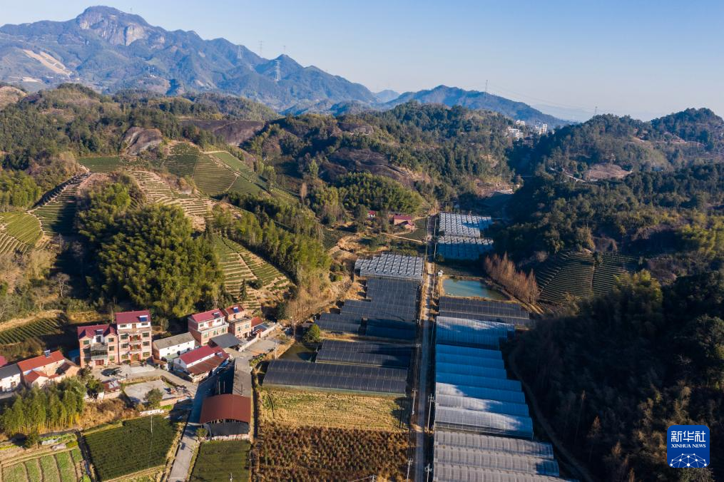 空中俯瞰金华市武义县浙江寿仙谷医药股份有限公司的铁皮石斛种植基地(1月9日摄,无人机照片)。浙江寿仙谷医药股份有限公司是国家重点农业龙头企业,基地主要培育铁皮石斛、灵芝、西红花等珍稀名贵中药材,同时也带动了周边农户就业和收入增长。