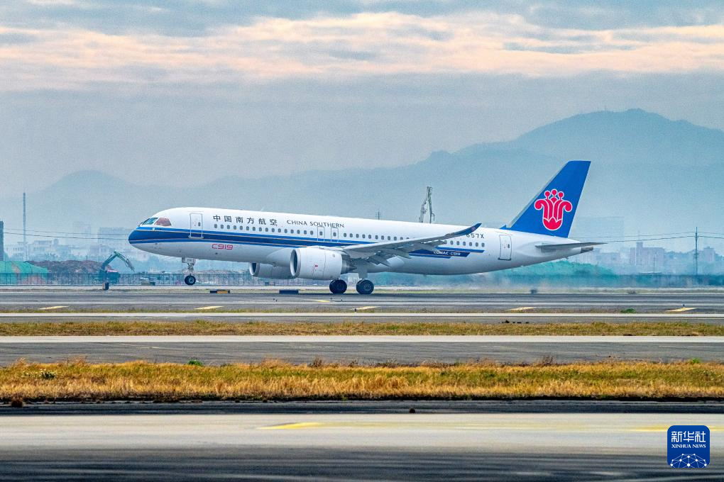 1月14日,一架南航C919国产大飞机在广州白云国际机场起飞。