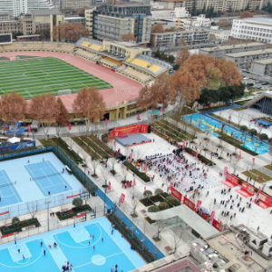 1月15日,市民在改造后的西安市人民体育场参加健身活动(无人机照片)。