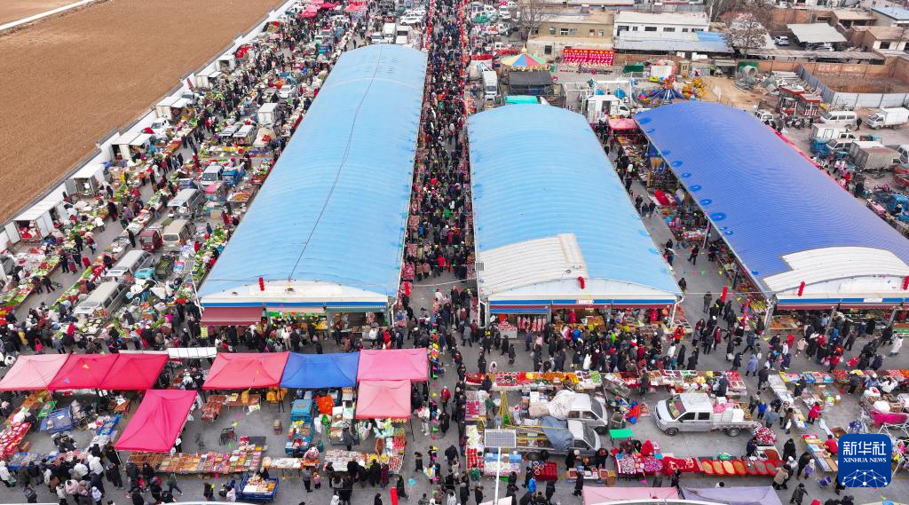 临近春节,宁夏银川市贺兰县金贵集贸市场货品琳琅满目,洋溢着浓浓年味。种类繁多的糕点干果、生鲜果蔬、新年饰品等年货吸引人们前来选购。据了解,金贵大集是集购物、饮食、观赏、休闲于一体的综合集市,逢日期尾号1、4、7开集。