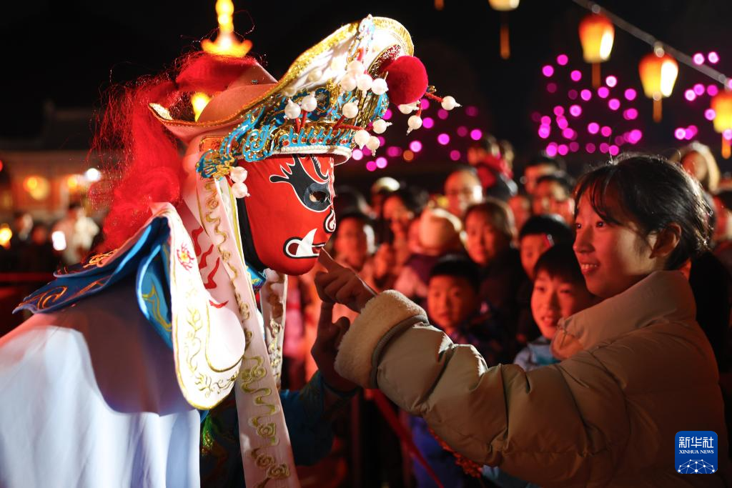 1月26日,人们在河北省唐山市丰南区河头老街景区观看表演。