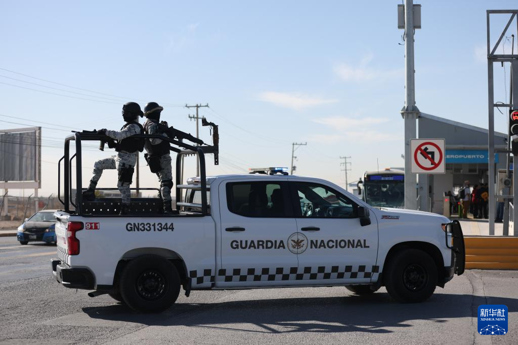2月4日,墨西哥国民警卫队员在墨西哥北部奇瓦瓦州华雷斯市巡逻。