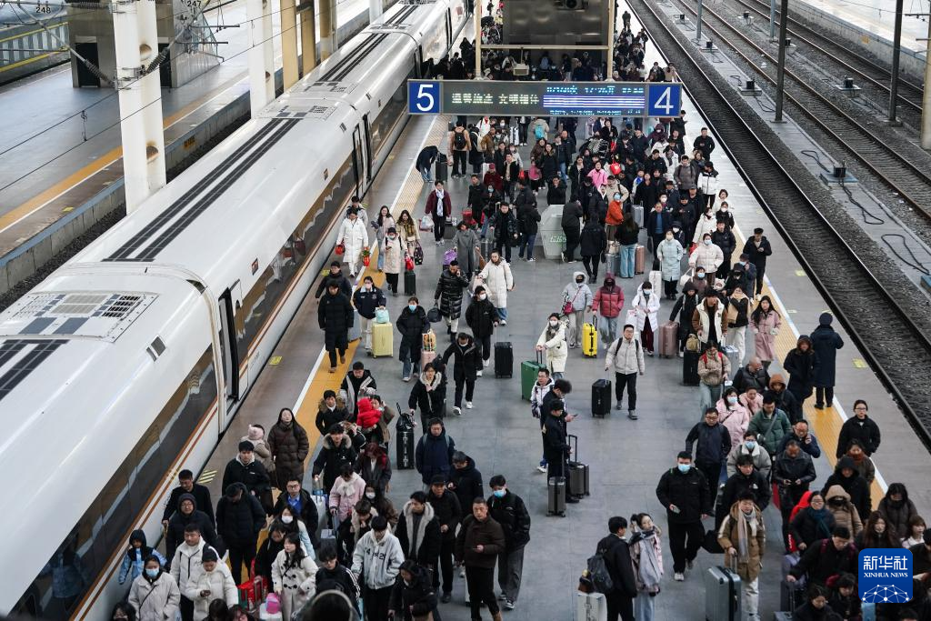 2月7日,旅客在合肥火车站上下列车。