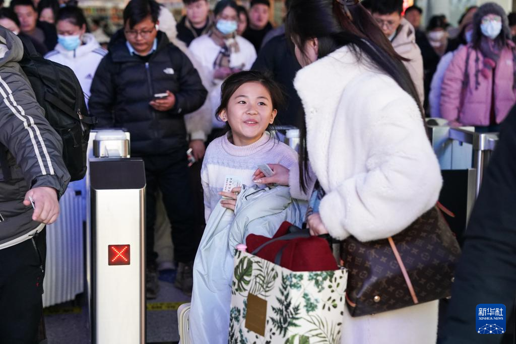 2月7日,旅客在合肥火车站进站乘车。