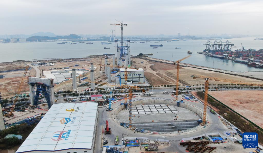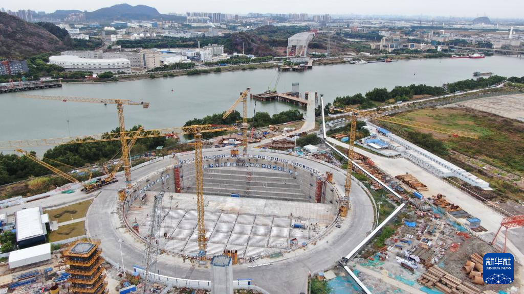 这是狮子洋通道主桥东锚碇施工现场(2月6日摄,无人机照片)。