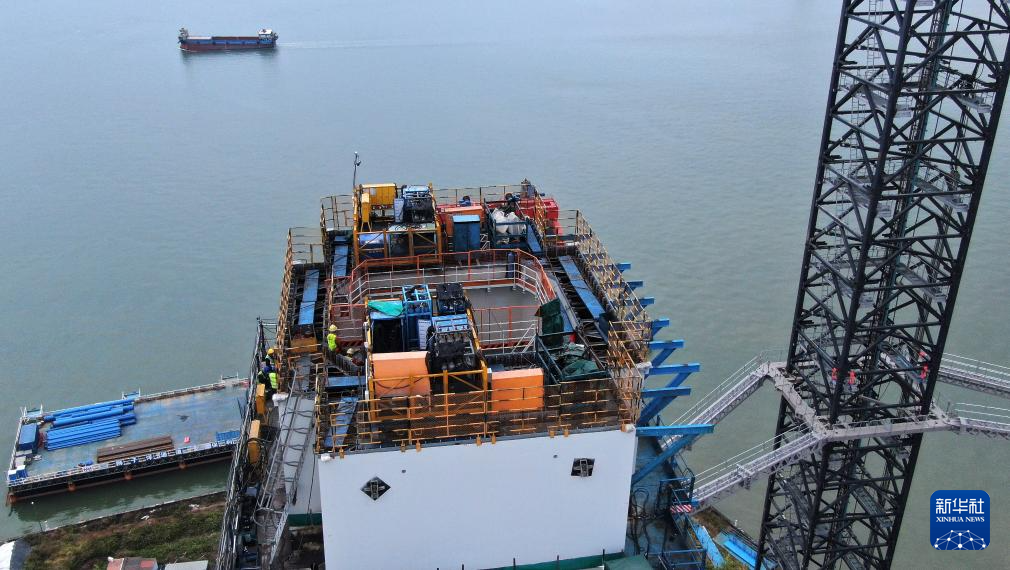 这是狮子洋通道主桥狮子洋大桥施工现场(2月6日摄,无人机照片)。