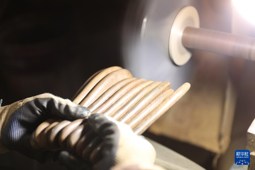 2月18日,在榔桥镇木梳产业园,手工艺人为木梳磨背。