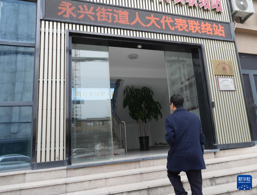 胡东方来到他任职企业所在的浙江省温州市龙湾区永兴街道人大代表联络站,参加每周一次的联络会,听取群众意见(2025年2月18日摄)。