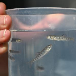 2月22日,在围场县一家三文鱼养殖企业,工作人员展示三文鱼苗。