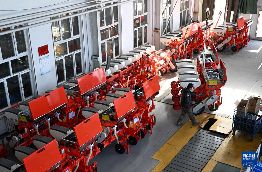 近日,内蒙古兴安盟乌兰浩特市的化肥、农机、种子企业加紧生产赶制订单,应对春耕春播市场需求。
