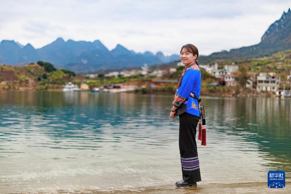 卢丹在镇宁布依族苗族自治县六马镇致富村的码头边留影(2025年2月20日摄)。