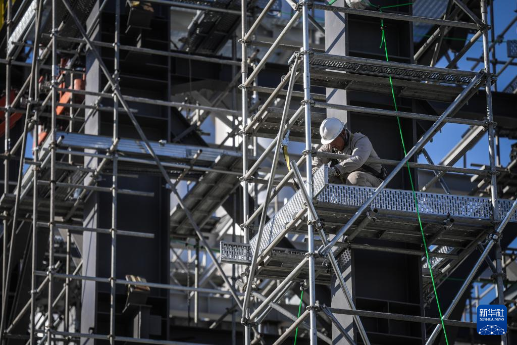 2月26日,工作人员在华锦阿美精细化工及原料工程项目现场施工。