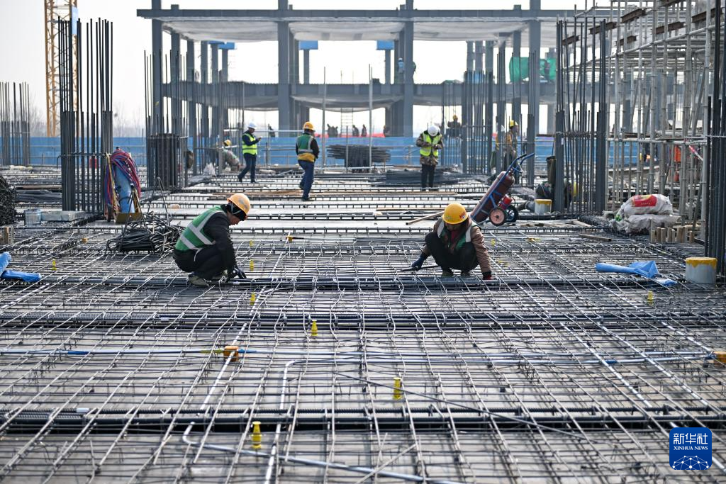 2月27日,中建三局工人在中国矿产资源集团有限公司雄安总部项目建设现场施工。