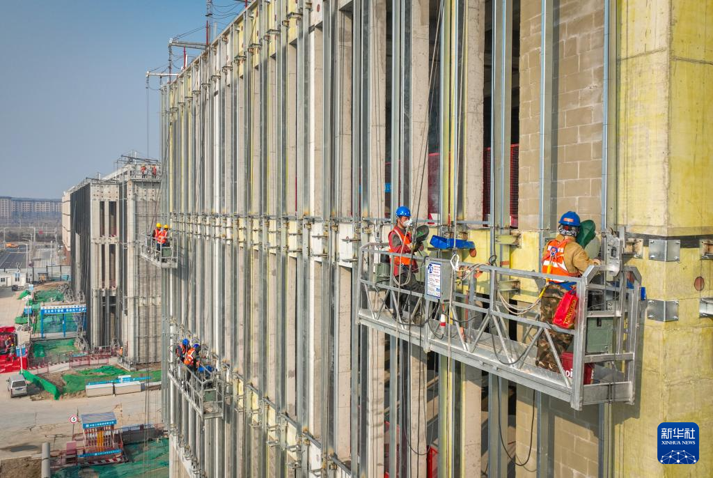 早春时节,河北雄安新区多处建设工地塔吊林立、机器轰鸣、车辆穿梭,数以万计的建设者以高标准高质量推进项目建设,呈现出一派热火朝天的繁忙景象。