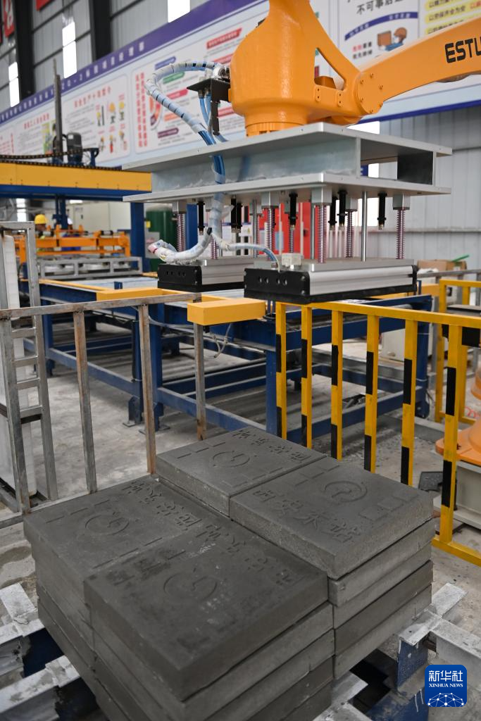 2月28日,在中铁二十二局西安东站小型预制构件智能化生产流水车间,智能设备加工预制构件。
