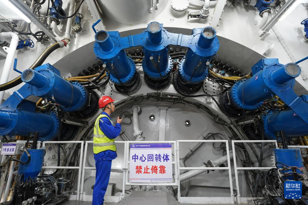 2月28日,中铁十四局技术人员在浙江绍兴群贤路西延萧山南秀路一期Ⅱ标工程隧道“临空号”盾构机内关注设备运行情况。