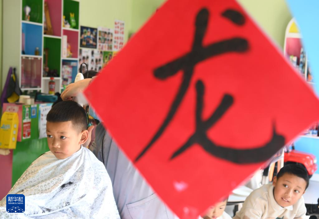 3月1日,在湖北省宜昌市秭归县归州镇万古寺村,理发师傅为当地小朋友理发。