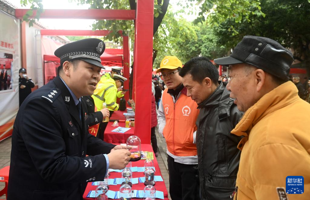 3月5日,在广西柳州市革新路“雷锋街市”,志愿者在为市民传授禁毒知识。