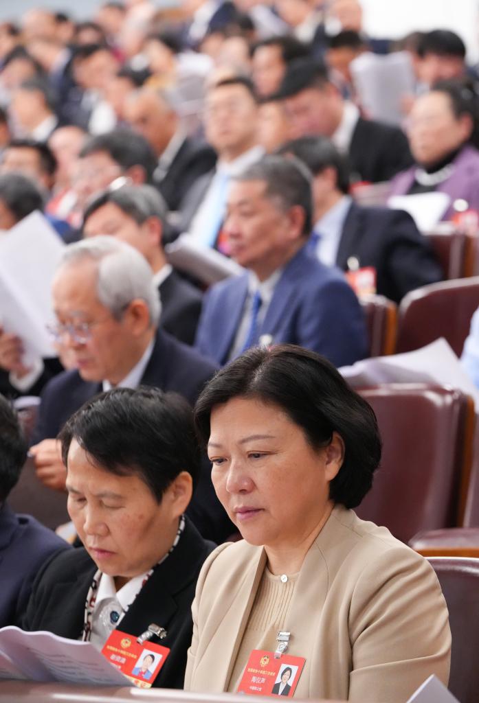 3月8日,十四届全国人大三次会议在北京人民大会堂举行第二次全体会议。这是全国政协委员列席会议。