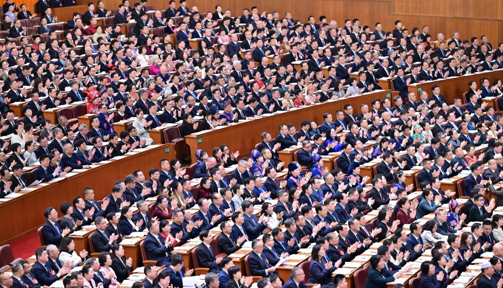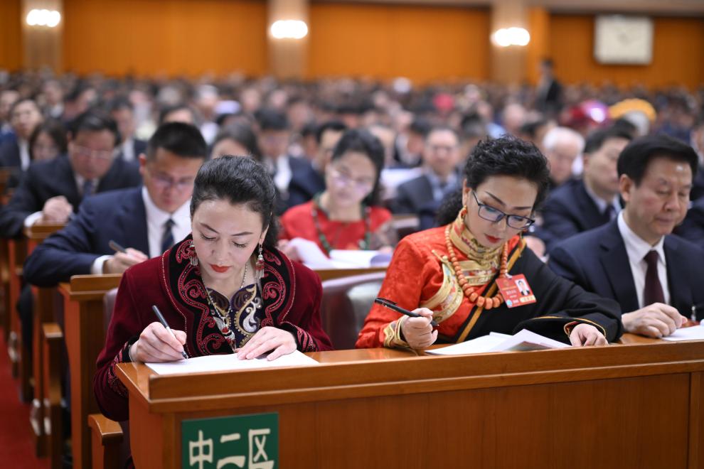 3月8日,十四届全国人大三次会议在北京人民大会堂举行第二次全体会议。