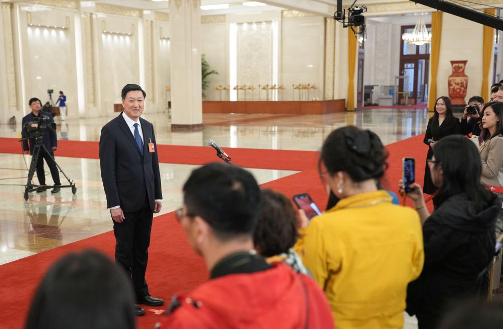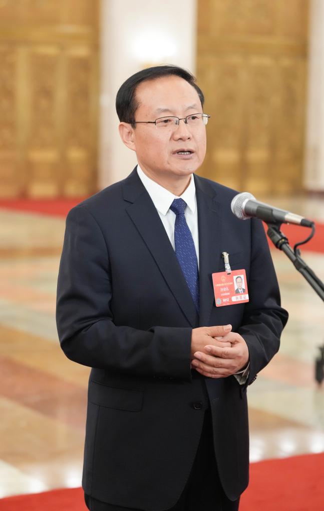 3月11日,第十四届全国人民代表大会第三次会议第三场“部长通道”集中采访活动在北京人民大会堂举行。这是文化和旅游部部长孙业礼接受媒体采访。