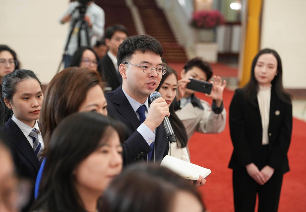 3月11日,第十四届全国人民代表大会第三次会议第三场“部长通道”集中采访活动在北京人民大会堂举行。这是新华社记者在提问。