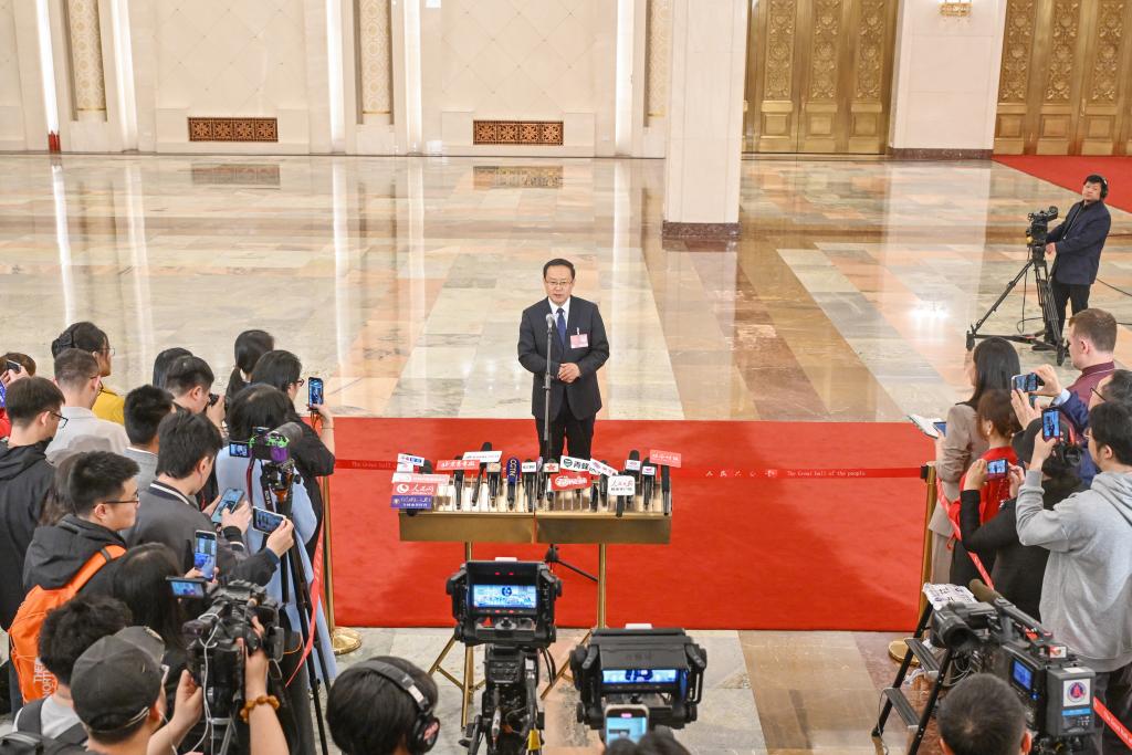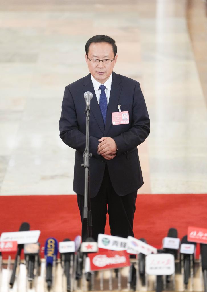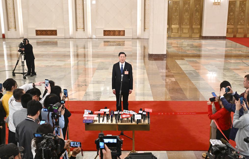 3月11日,第十四届全国人民代表大会第三次会议第三场“部长通道”集中采访活动在北京人民大会堂举行。这是自然资源部部长关志鸥接受媒体采访。