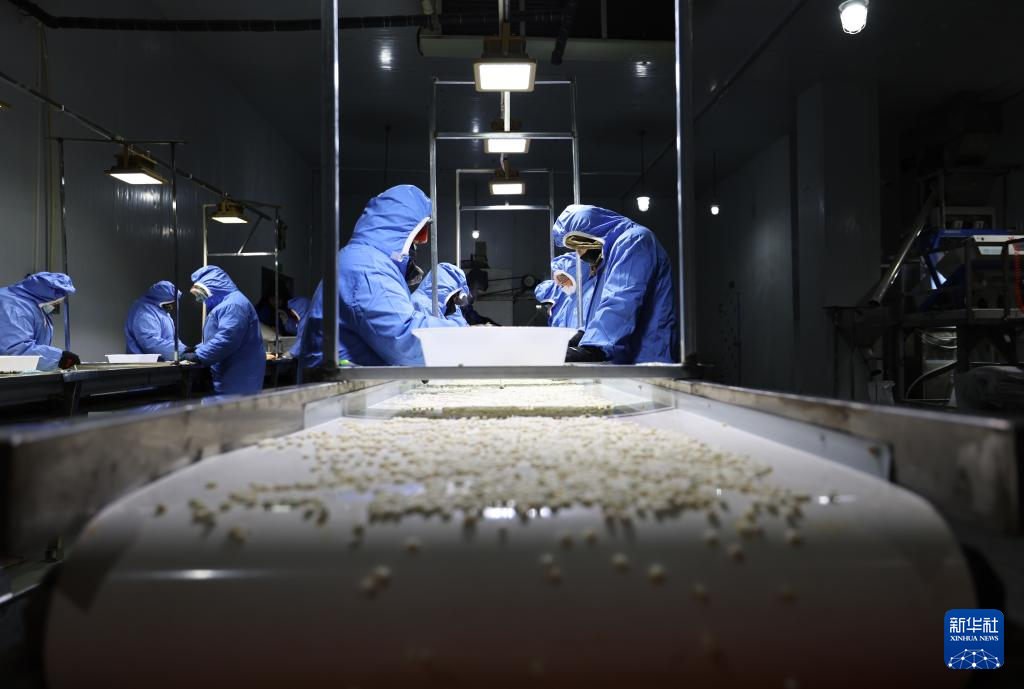 3月11日,在辽宁富安农业发展有限公司,工人在车间挑选玉米粒。