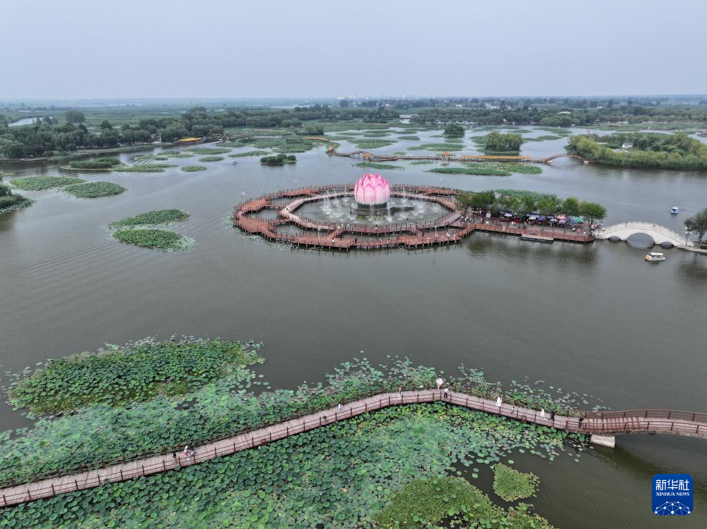 雄安新区白洋淀荷花大观园景色(2024年7月9日摄,无人机照片)。