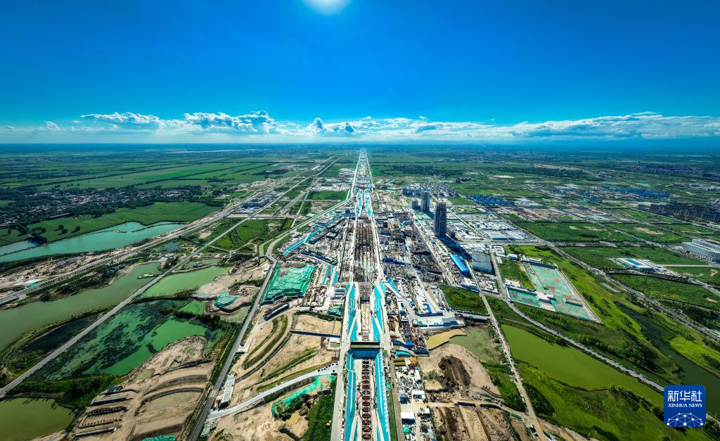 位于雄安新区启动区内的东西轴线项目建设现场(2024年8月12日摄,无人机照片)。