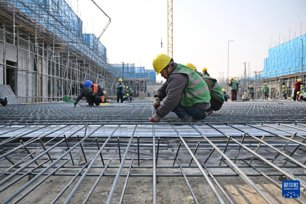 中国五冶集团工人在雄安新区起步区第五组团大学城配套一期项目三标段建设现场施工(2月27日摄)。