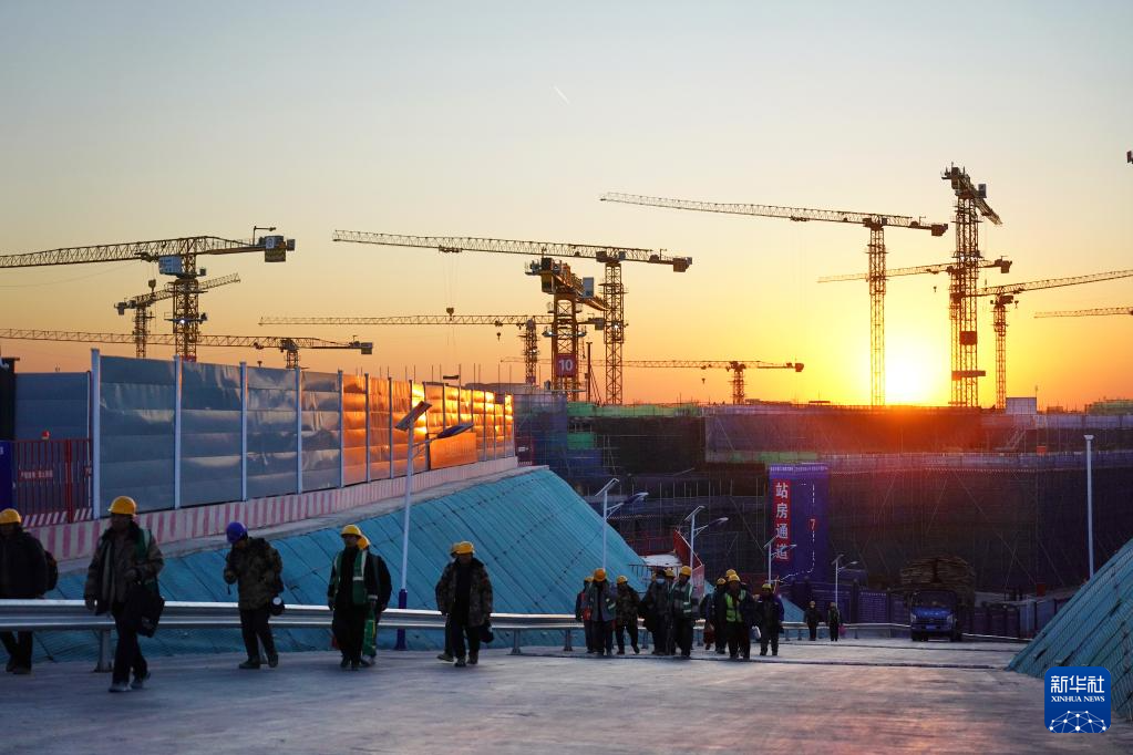 落日余晖下的雄安新区国贸片区建设现场(1月15日摄)。