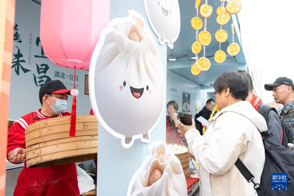 3月17日,消费者在2025年“中华美食荟”湖北宜昌摊位购买红油包子。