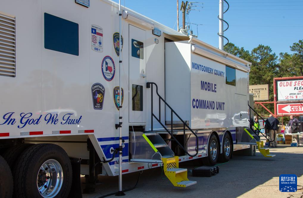 这是3月20日在美国得克萨斯州山姆休斯敦国家森林公园拍摄的指挥调度车辆。