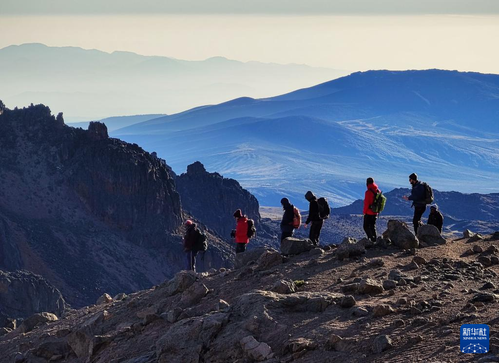 3月15日,在肯尼亚山国家公园,人们登顶莱纳纳峰后下山。