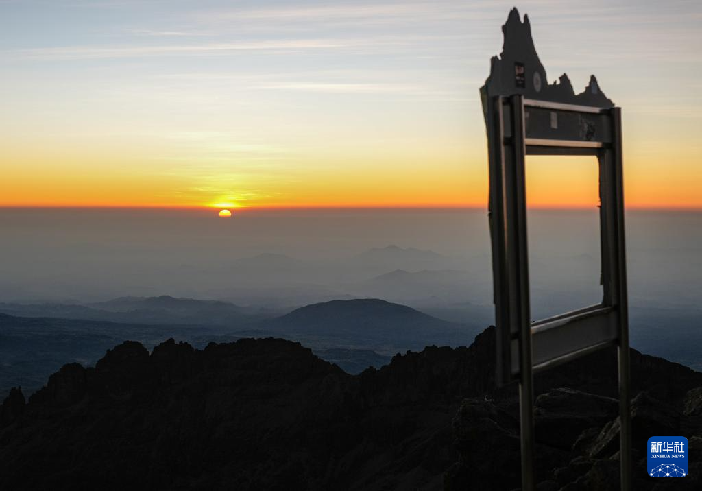 这是3月15日在肯尼亚山国家公园拍摄的第三高峰莱纳纳峰日出景色。