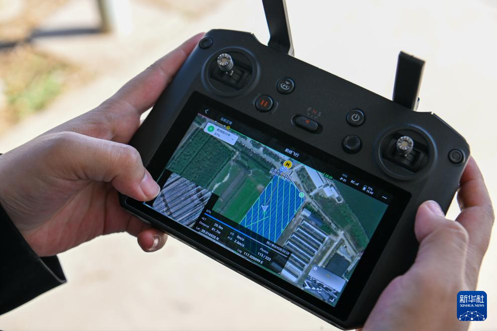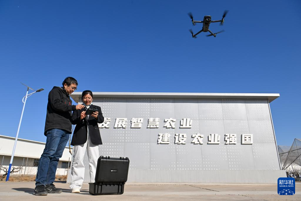 在农芯科技(天津)有限责任公司智慧农业园区,科研人员通过搭载多光谱相机的无人机开展建图作业(3月20日摄)。