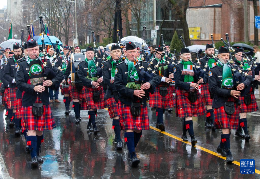 3月16日,一支乐队在加拿大多伦多举行的圣帕特里克节游行中表演。