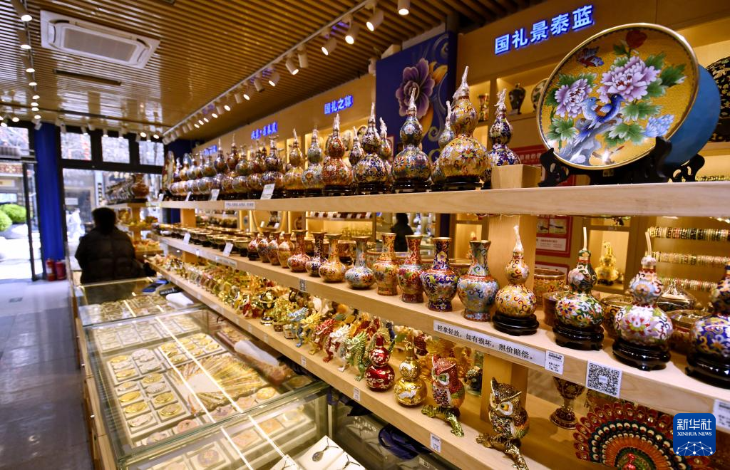 3月25日,前门大街景泰蓝展销店内展示的各类景泰蓝工艺品。
