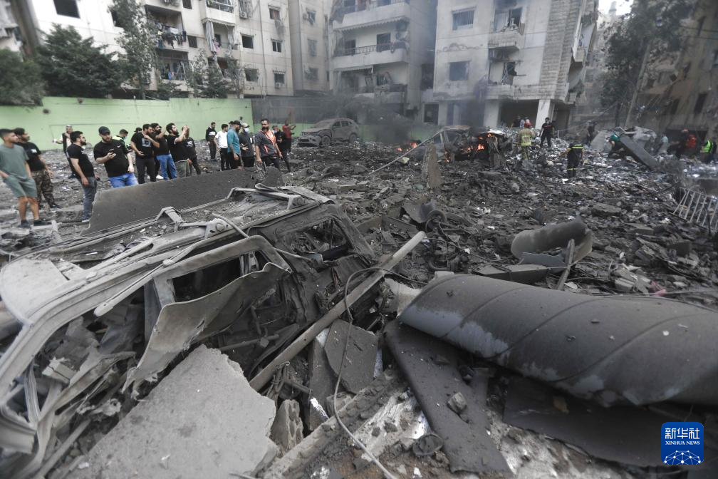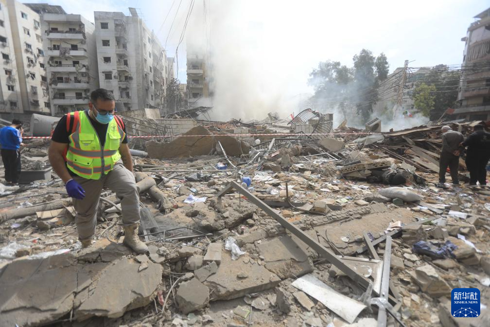这是3月28日在黎巴嫩贝鲁特南郊拍摄的被以军袭击摧毁的建筑。
