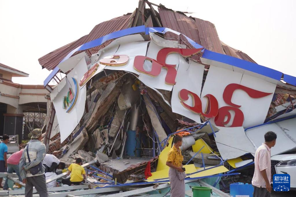 这是3月28日在缅甸曼德勒省拍摄的地震后受损的建筑。