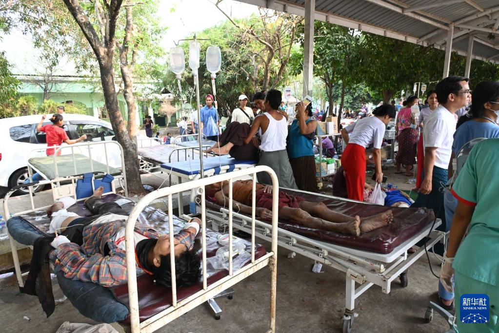 3月28日,受灾民众在缅甸内比都接受救治。