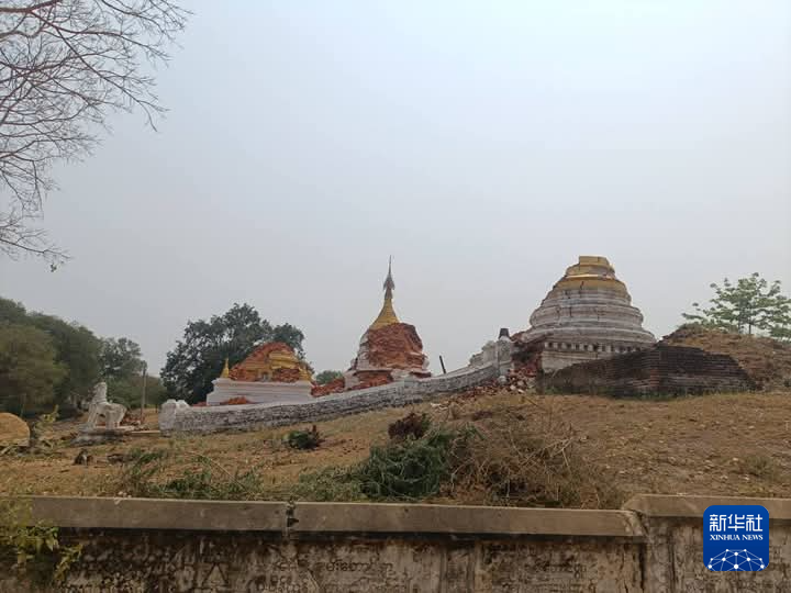 这是3月28日在缅甸曼德勒省拍摄的地震后受损的建筑(手机照片)。