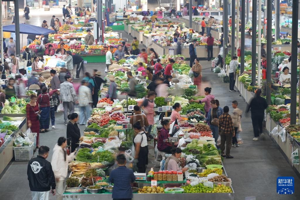 3月29日,人们在云南瑞丽一处综合农贸市场购买农产品。