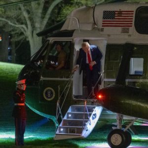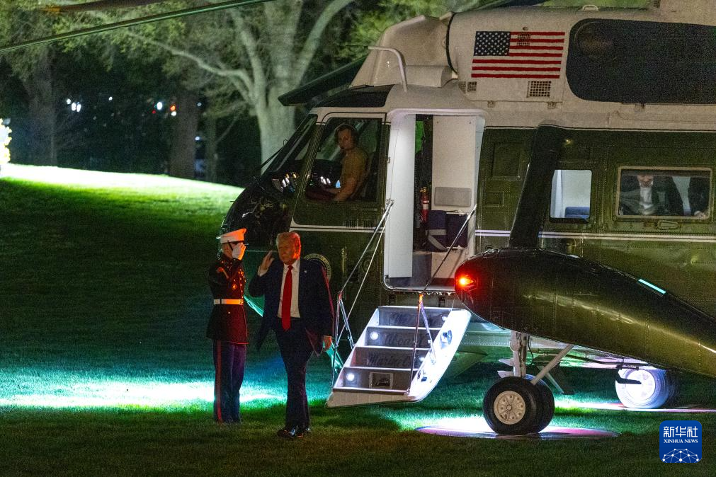 3月30日,美国总统特朗普乘直升机返回首都华盛顿白宫。