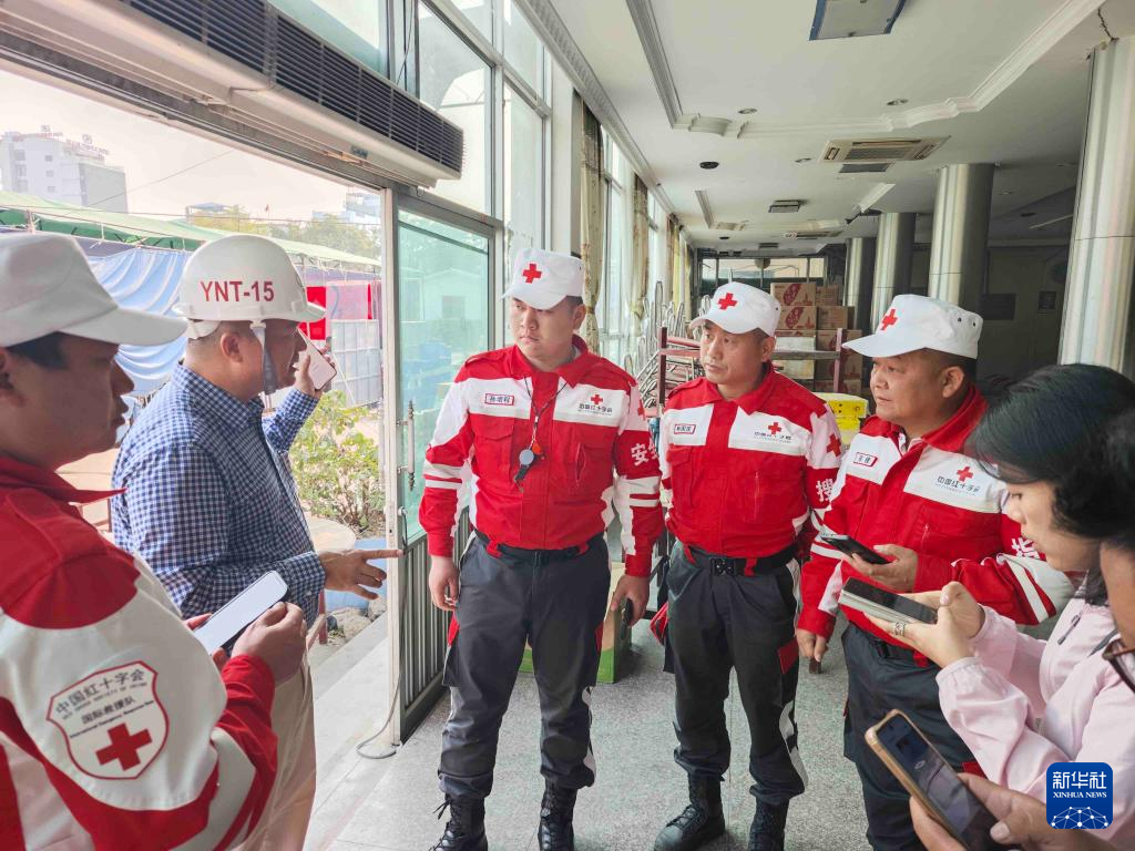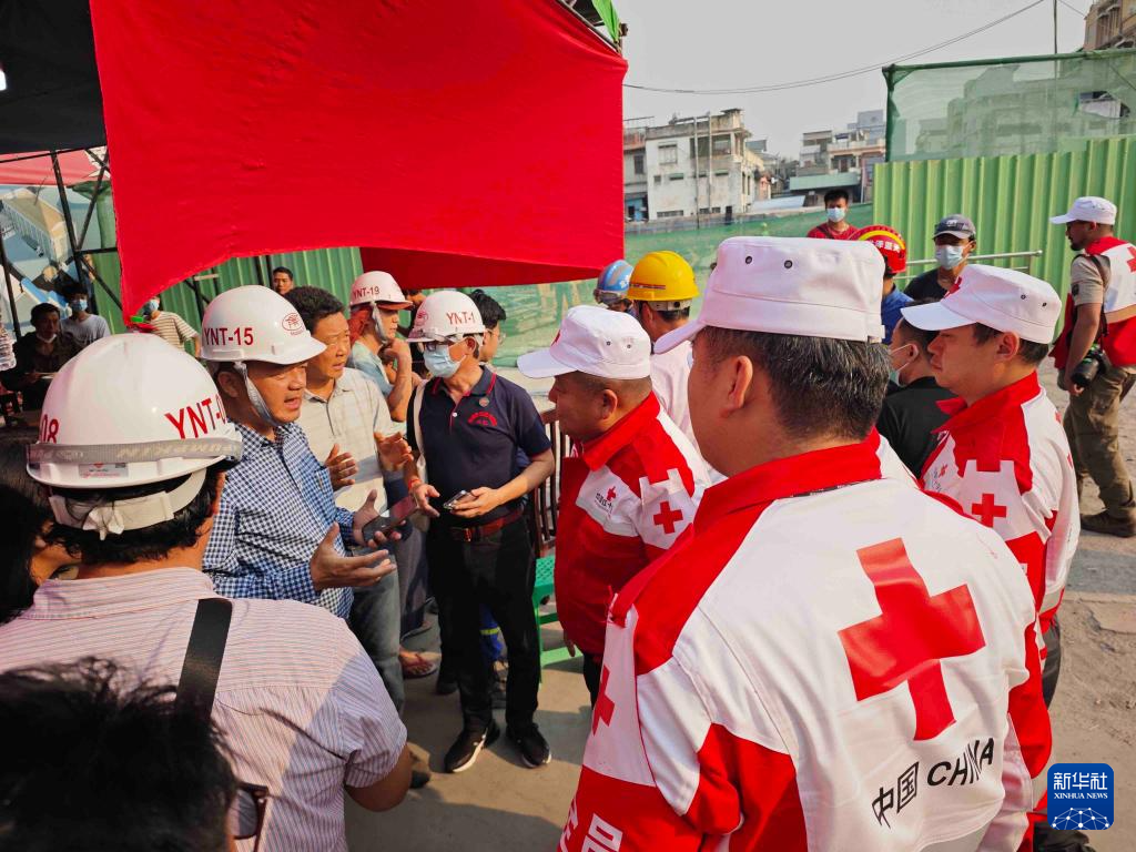 3月31日,中国红十字国际救援队成员在缅甸曼德勒开展工作。